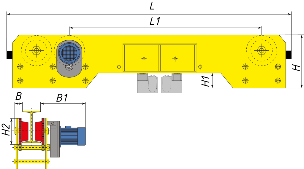 Концевые балки подвесные тип BS выполняют функцию передвижения моста крана снизу подкранового пути. Возможно использовать как в стандартном однопролётном исполнении так и двухпролётном.