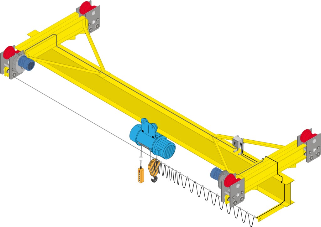- Особенность конструкции состоит в том, что кран-балка крепится к подкрановым путям снизу. Для размещения не требуются колонны, что высвобождает полезное пространство в помещении.