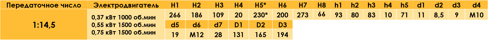 Цей тип редуктора виконаний у вертикальному корпусі. Передавальне число редуктора – 14,5. Електродвигуни встановлюються в 63 або 71 габариті потужністю 0,25 – 0,55 кВт з частотою обертання 1000-1500 об.хв. Вихідний вал пустотілий циліндричний діам. 28 мм. Можливе встановлення приводу вал – шестерня.