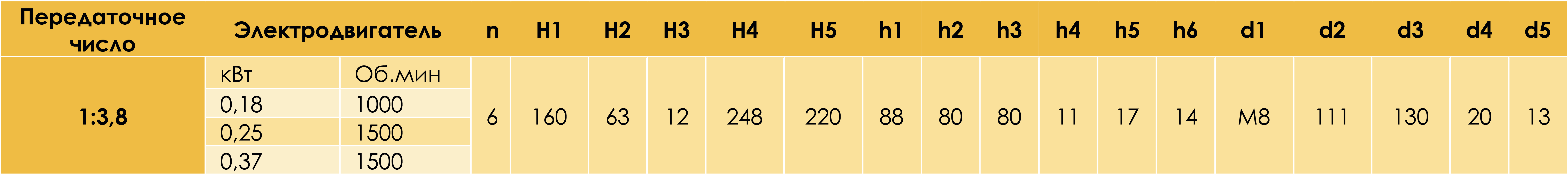 В данном мотор-редукторе применяются косозубые шестерни, что увеличивает срок службы, надёжность и прочность. Посадочный диаметр под вал 20 мм. Комплектуется электродвигателями 0,18 – 0,37 кВт с частотой вращения 1000-1500 об.мин. При необходимости возможно укомплектовать электродвигателем 0,55 кВт. Для этого дополнительно изготавливается переходной фланец крепления электродвигателя.